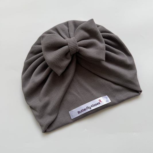 Ribbed Baby Turban - Cocoa Grey | Donut & Bow Designs