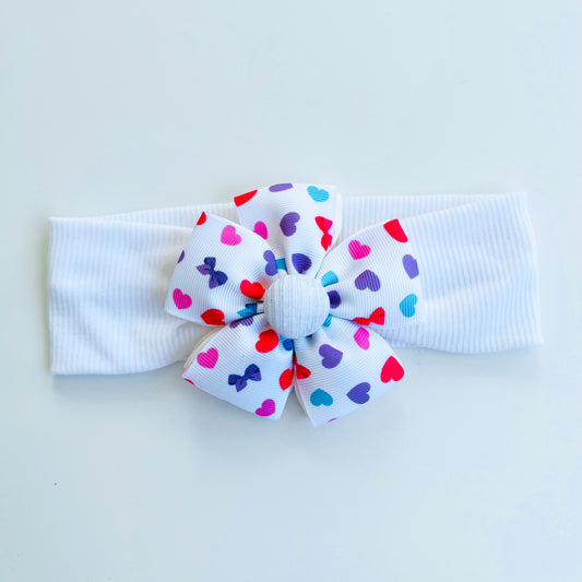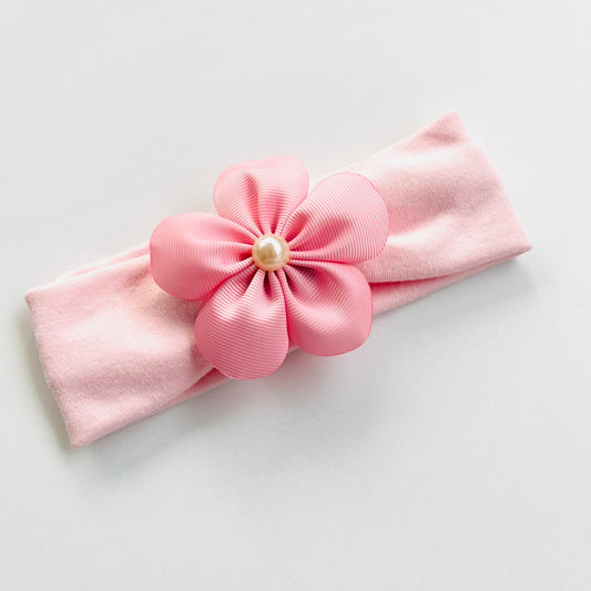 Plain Colour Headband With Pearl Embedded Ribbon Flower