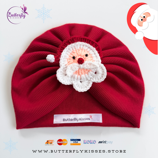 Christmas Magic Turban Hat With Crochet Santa & Snowman