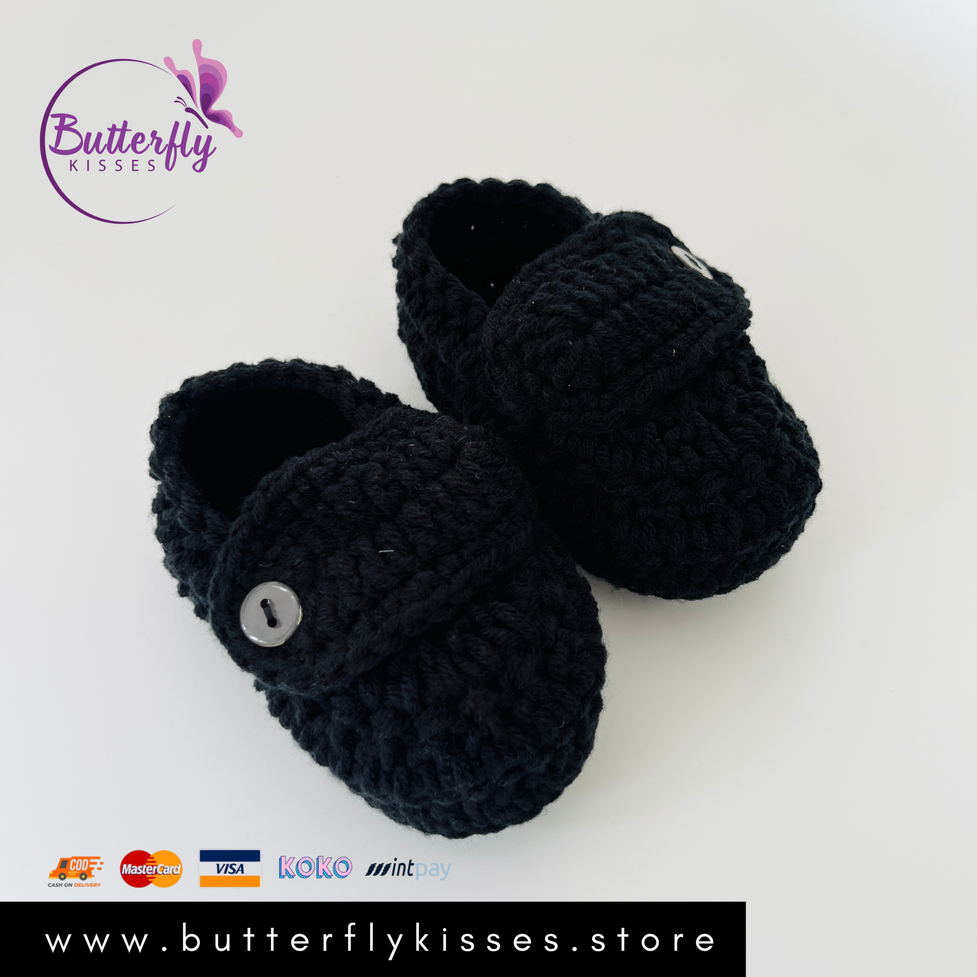 The secure button-strap design ensures a snug fit, while the cozy crochet texture makes them gentle on delicate baby skin. Perfect for everyday wear, photo sessions, or gifting, these booties are as practical as they are adorable.