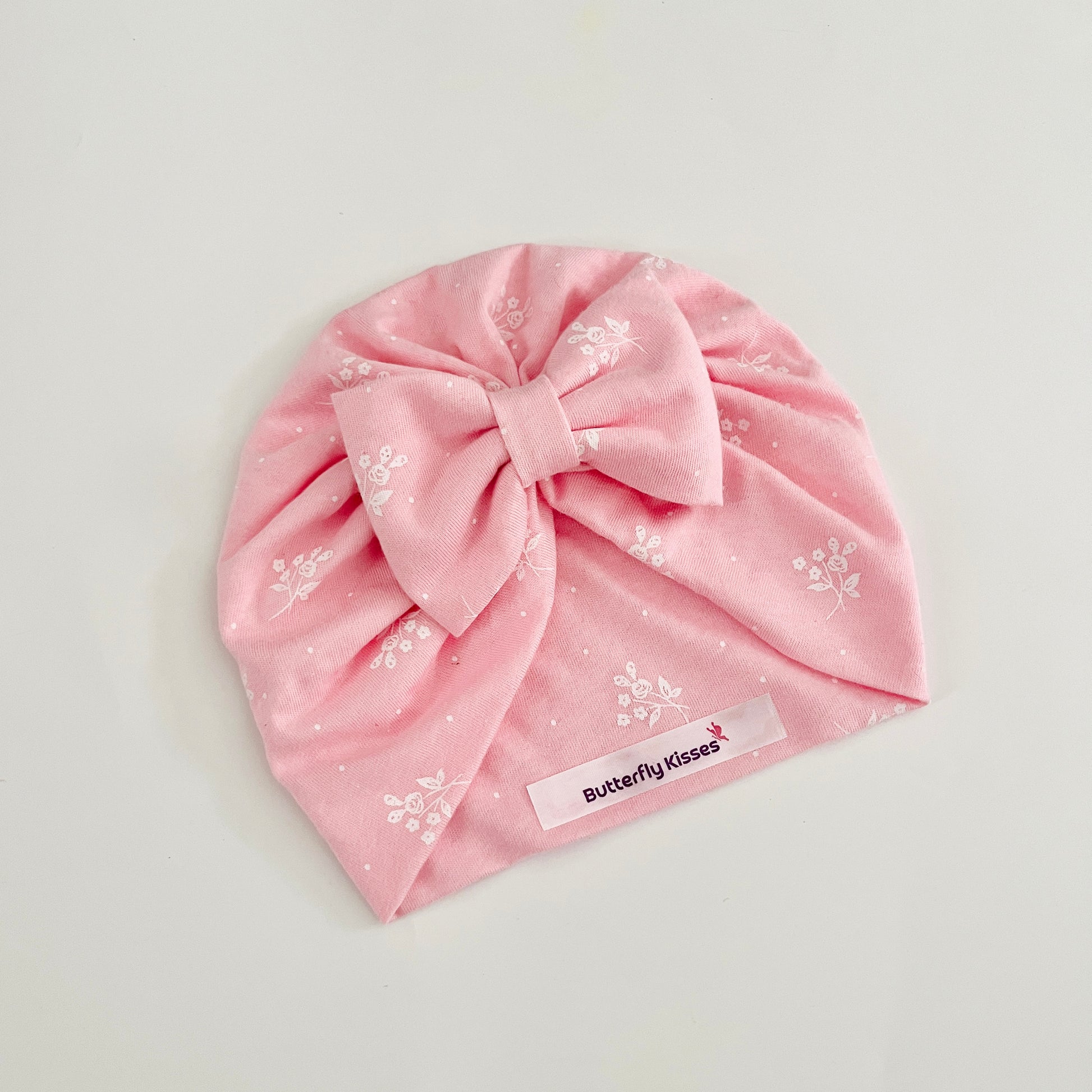 Ditsy Floral Soft Pink Bow Design Baby Turban Hat
