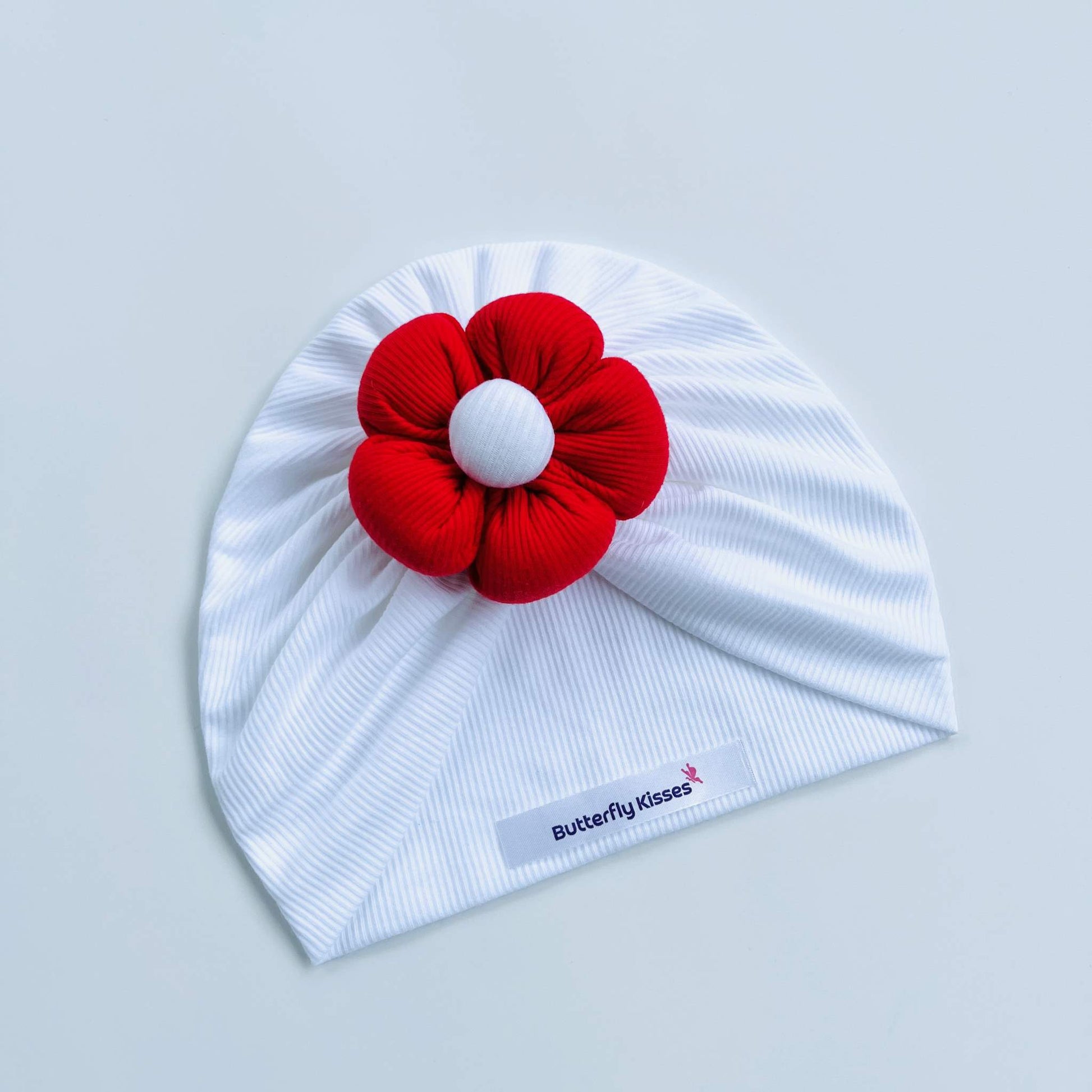 Adorn your little one with our White Baby Turban featuring a beautiful puffy flower in vibrant red, blue, yellow, and pink. Made from soft, breathable fabric, this baby turban ensures comfort while adding a stylish touch to any outfit. Ideal for special occasions or everyday wear, this turban for baby girls is perfect for newborns, infants, and toddlers. The colorful flower design enhances the charm, making it a great choice for baby photo shoots, baby shower gifts, or birthday outfits. Get this trendy baby head wrap today to complete your baby’s adorable look