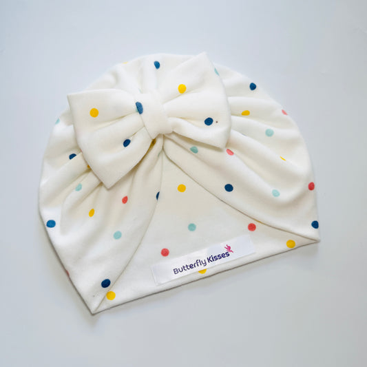 Baby Girl Confetti Bow Turban Hat – Soft Cotton Knot Beanie Cap